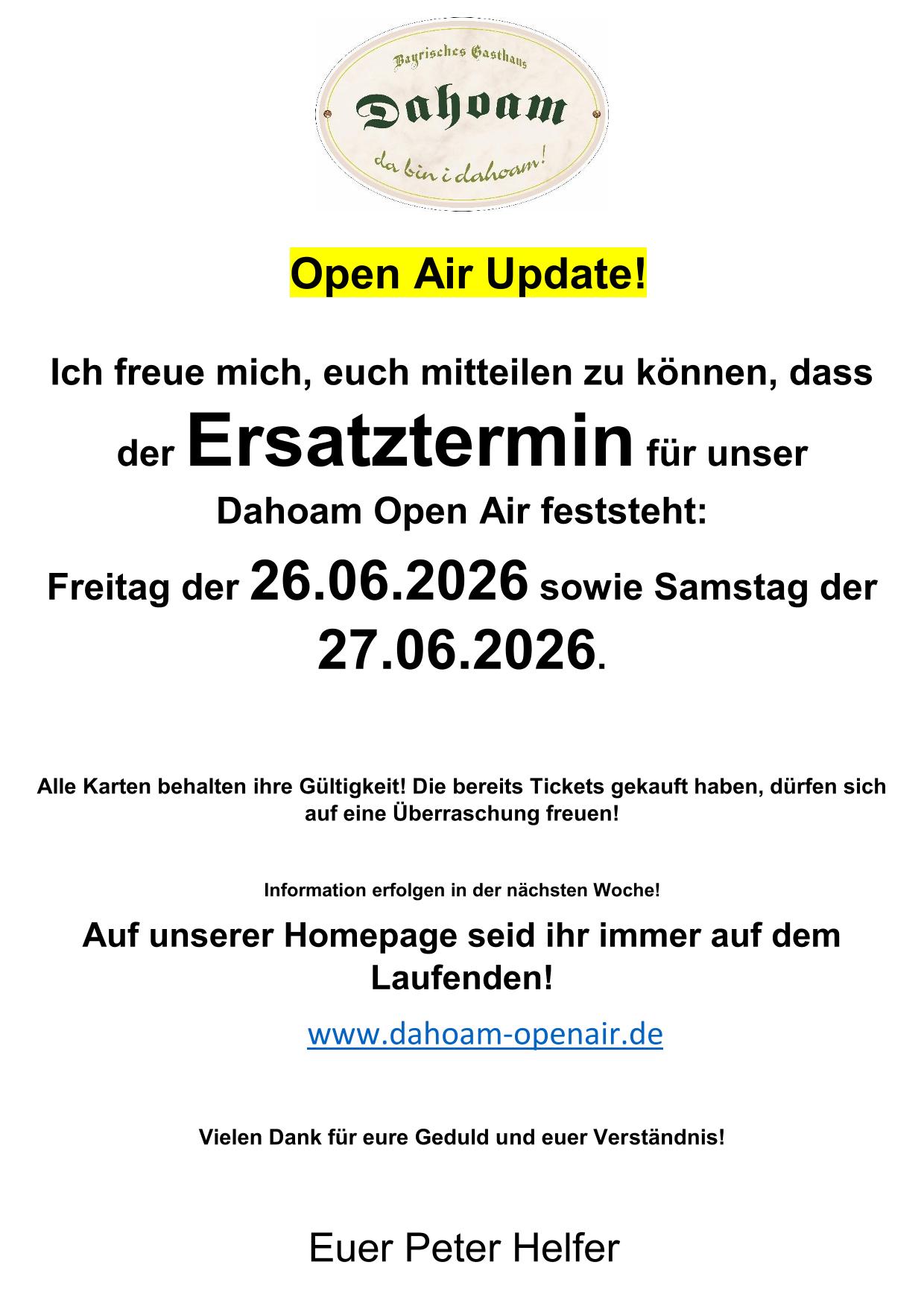 Wir sind im Vorverkauf! Für unser Dahoam Open Air 2025